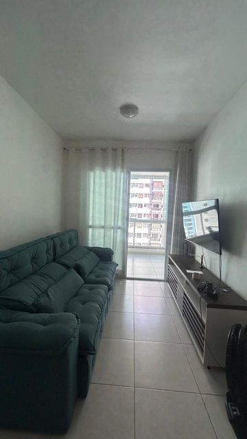 Apartamento com 1 quarto, sala ampla integrada à cozinha, banheiro social e 1 vaga de garagem.