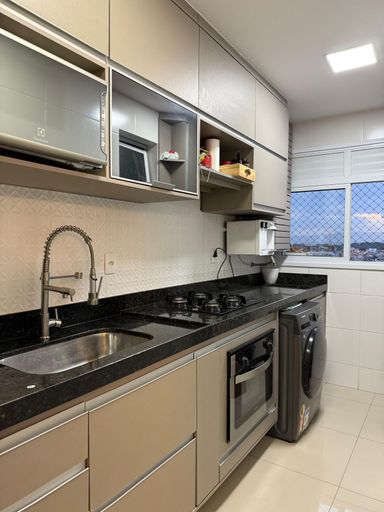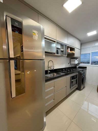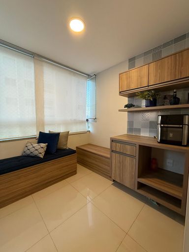 Sol da manhã, vista para o mar,sala para dois ambientes,varanda ampla ,banheiro social, cozinha e área de serviço — tudo com marcenaria planejada.