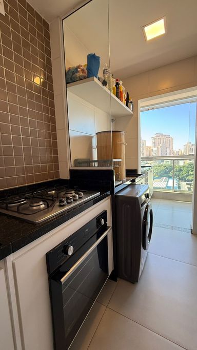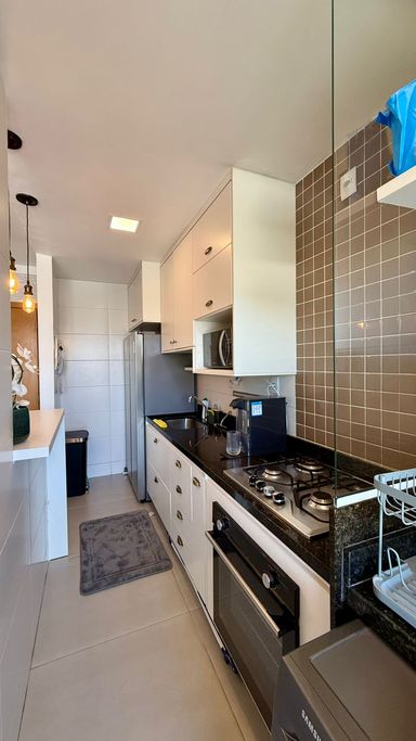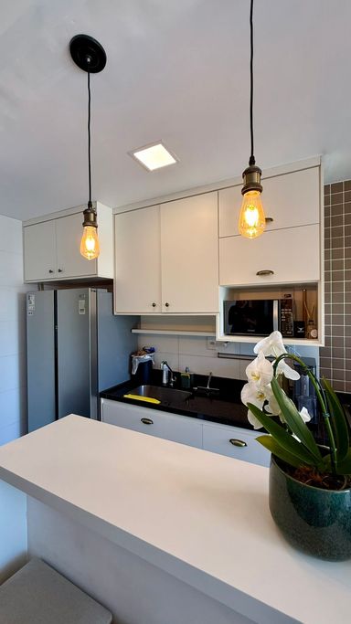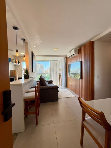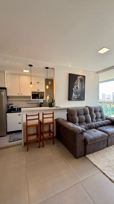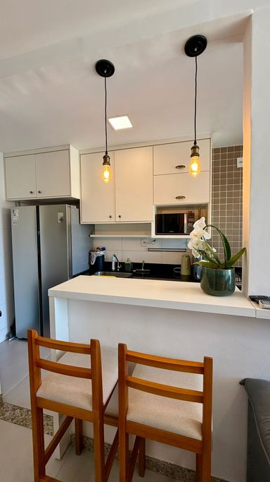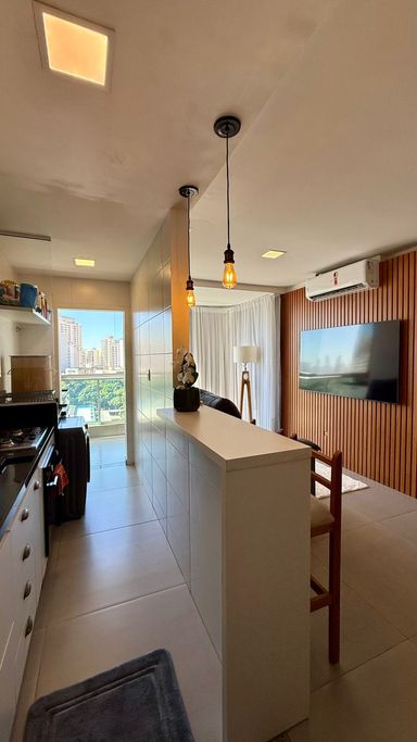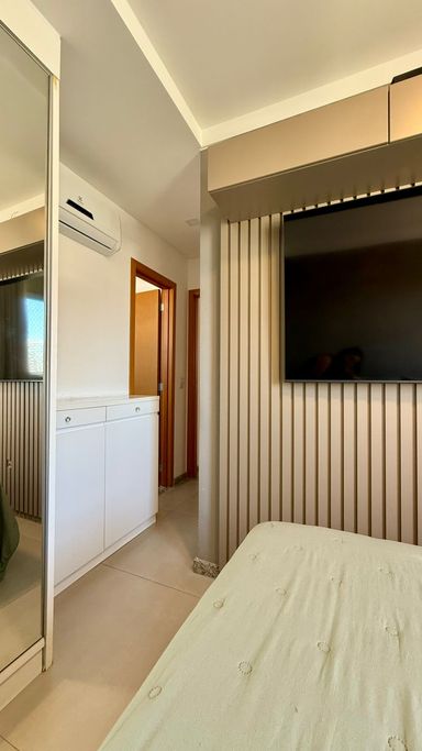 Apartamento de 2 quartos (1 suíte), todo climatizado e com marcenaria planejada.