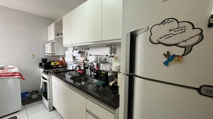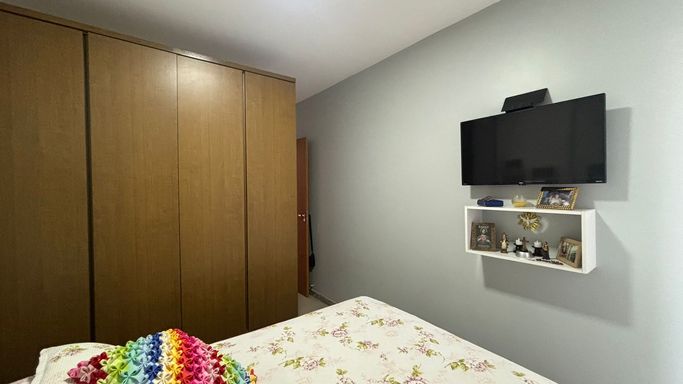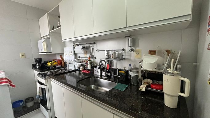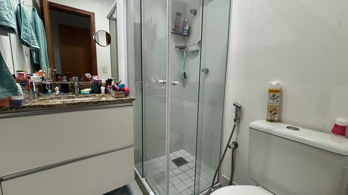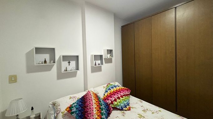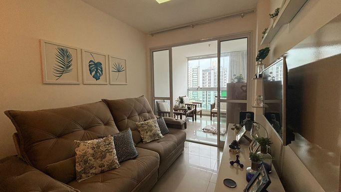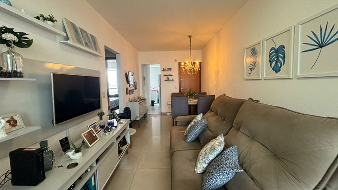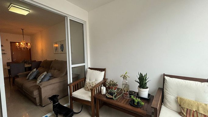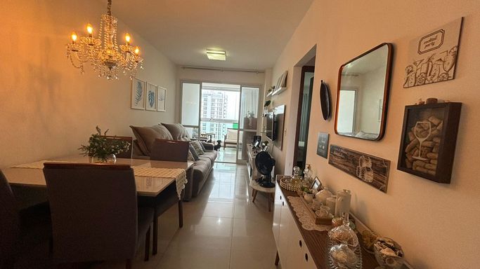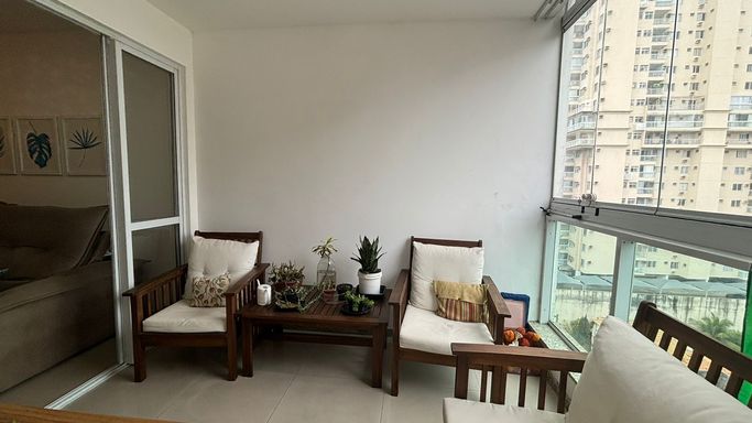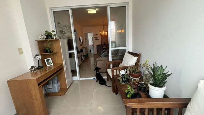 Amplo apartamento com 70 m², varandão com fechamento de vidro, duas vagas de garagem cobertas e soltas.
