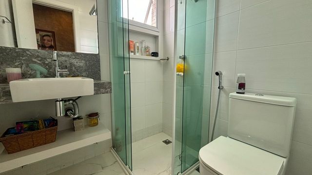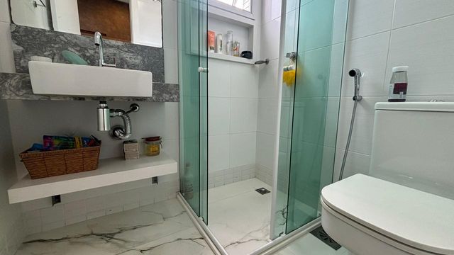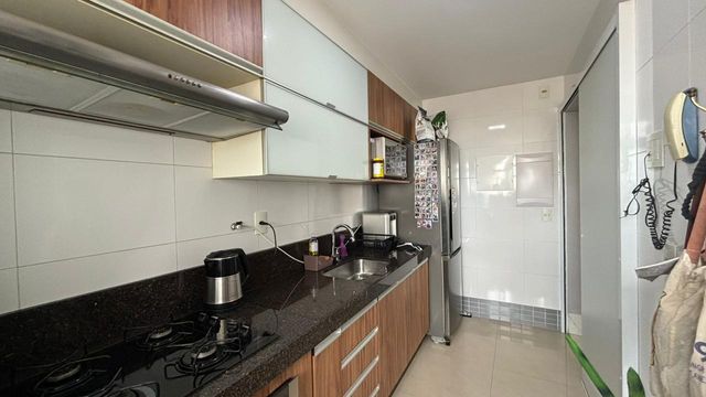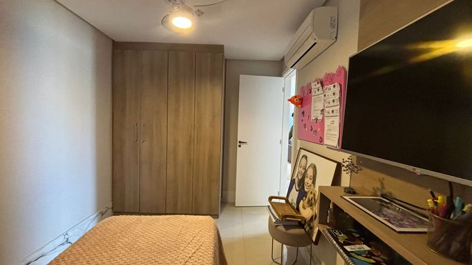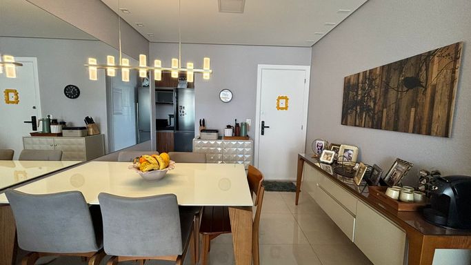 São três quartos, sendo uma suíte, banheiro social, marcenaria em todos os cômodos, banheiros reformados, varanda integrada com a sala, excelente acabamento e super ventilado ,