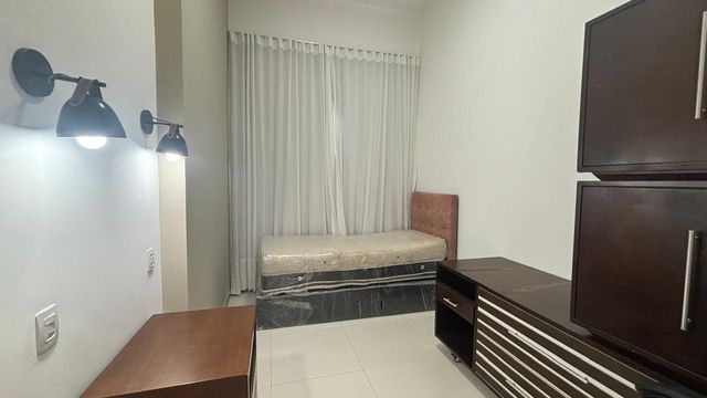 Conta com quatro quartos, sendo duas suítes (uma master com closet planejado), além de um escritório e outro espaço acústico, ideal para estúdio ou espaço criativo.